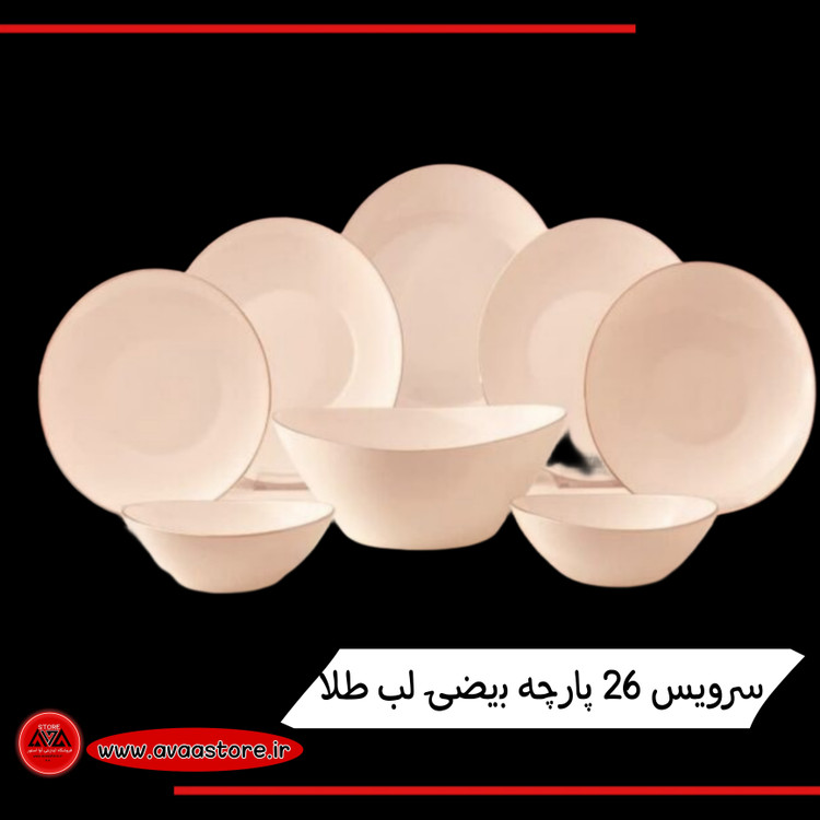 سرویس غذاخوری 26 پارچه بیضی لب طلا دینو درجه یک کارخانه مقصود