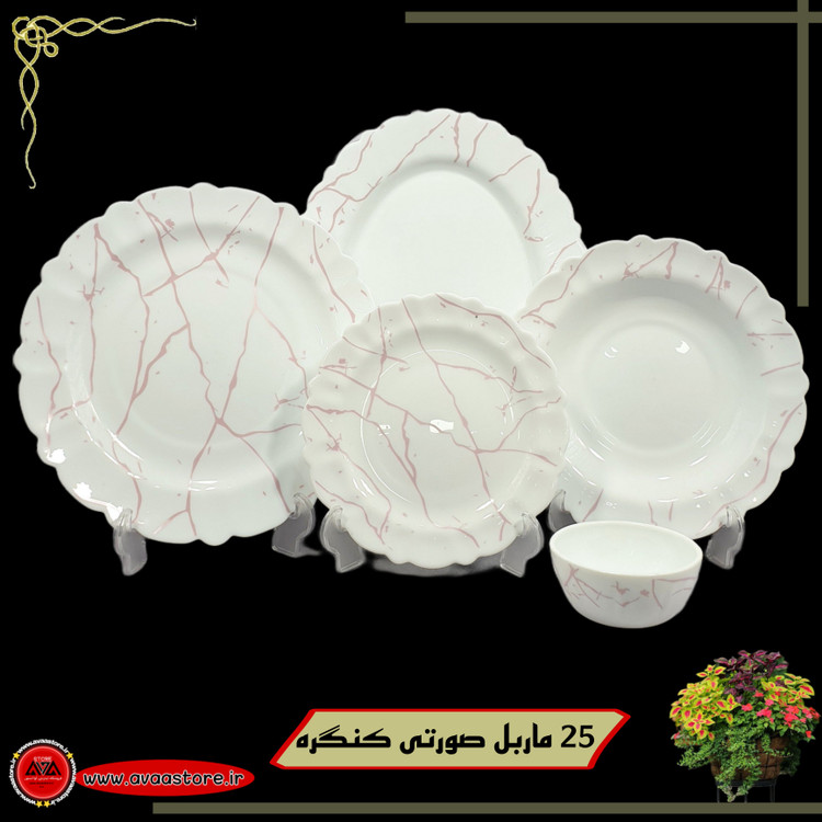 سرویس غذاخوری 25 پارچه آرکوپال ماربل صورتی ( 6 نفره )