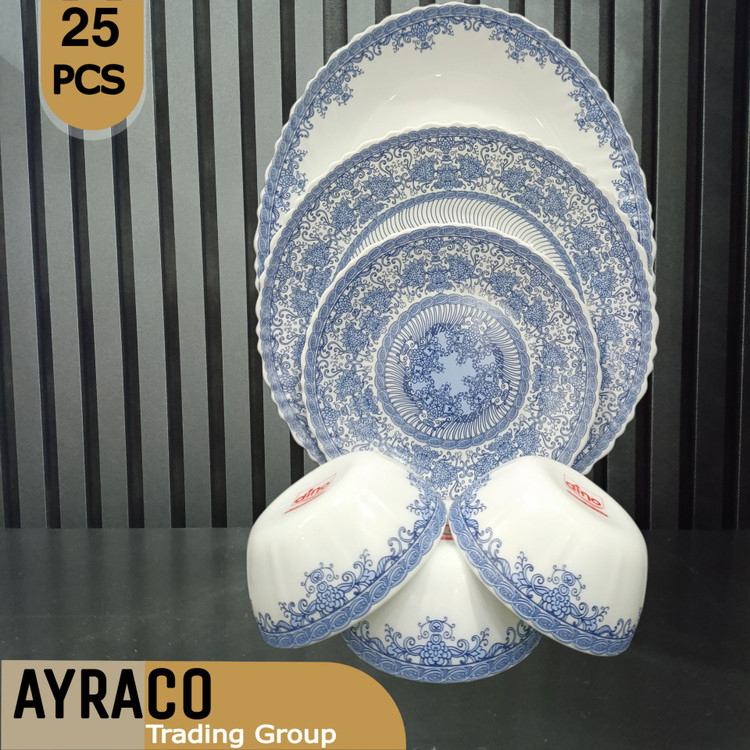 سرویس غذاخوری ۲۵ پارچه آرکوپال گرد پیچ ۶ نفره | طرح آیورا سرمه ای | مقاوم، سبک
