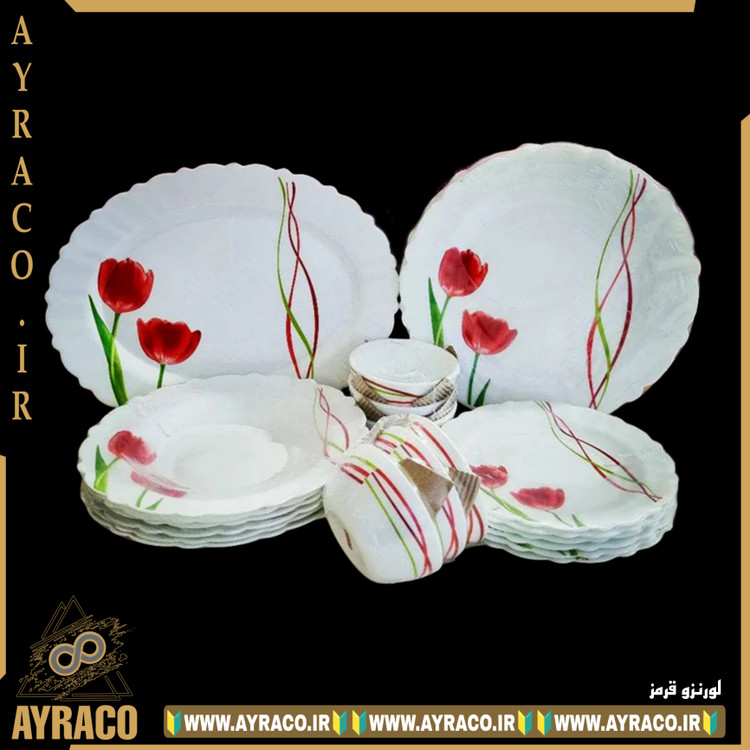 سرویس غذاخوری ۲۵ پارچه آرکوپال کنگره ۶ نفره | لورنزو قرمز | مقاوم