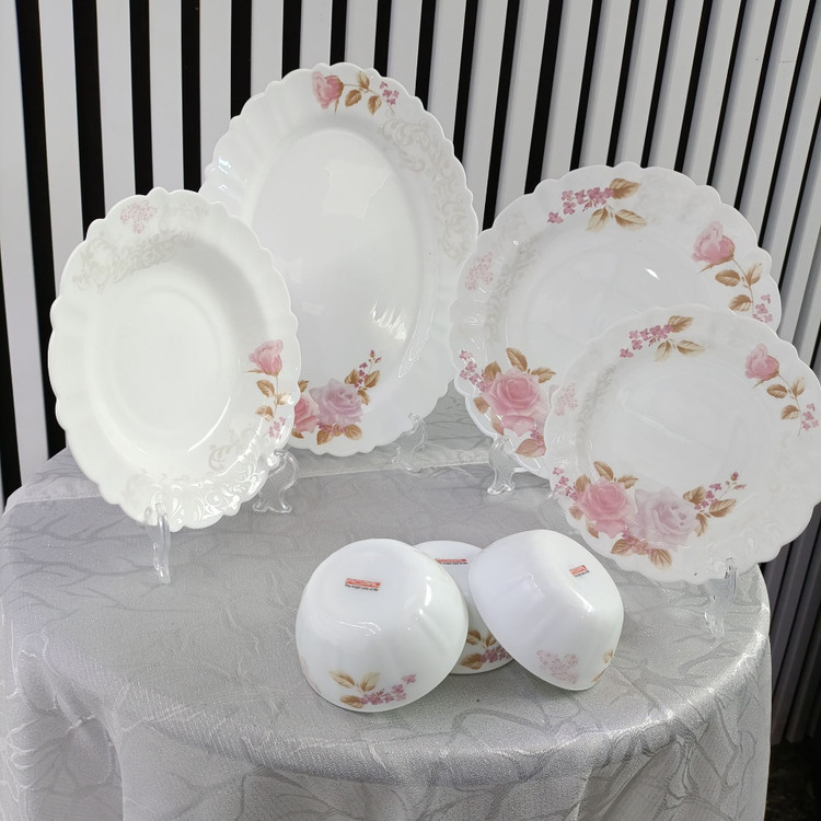 اقلام داخل سرویس شامل ۶ عدد بشقاب پلوخوری، ۶ عدد بشقاب خورشتخوری، ۶ عدد پیشدستی، ۶ عدد پیاله کوچک (مناسب برای ماست یا ترشی) و ۱ عدد دیس پلوخوری بزرگ است. این ترکیب کامل، نیاز خانوادهها را برای استفادهی روزمره یا پذیراییهای ساده برطرف میکند.