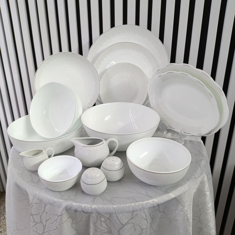 نسبت به ۲۵ پارچه: اضافه شدن کاسه سالاد، کاسه آبگوشت، کاسه آون، ظرف مرغ خوری، سسخوری و نمکپاشها