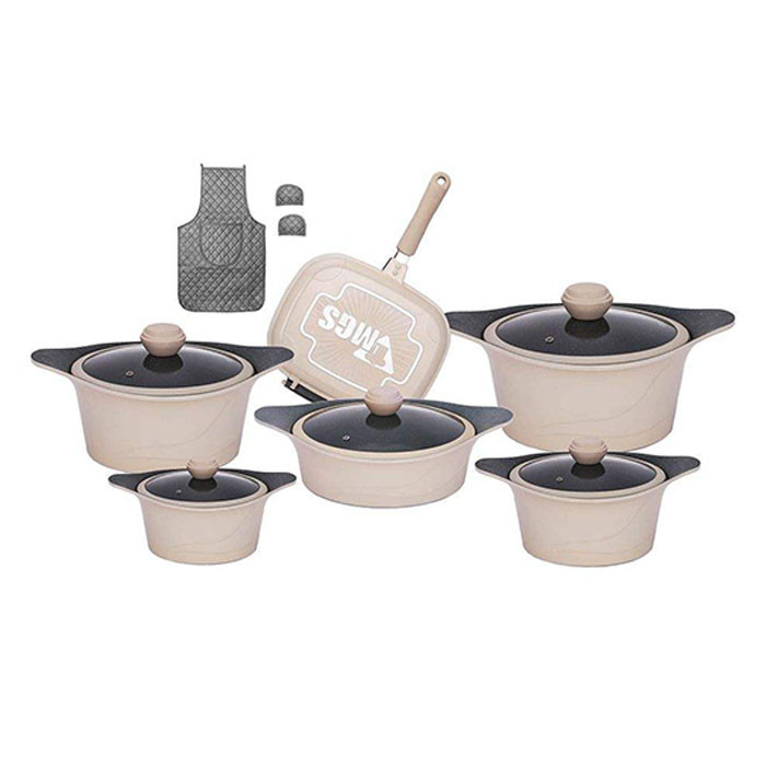 سرویس قابلمه 15 پارچه ام جی اس ( MGS ) رنگ کرم