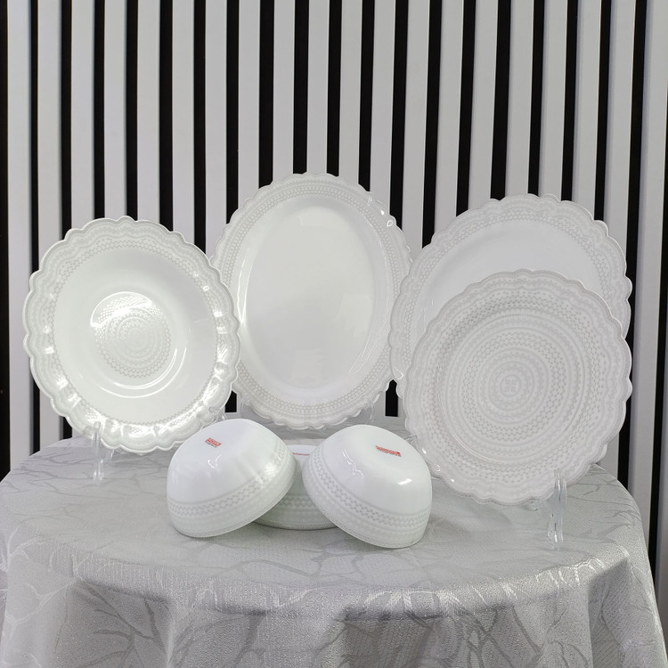 این سرویسها با قالب محبوب کنگرهای طراحی شدهاند؛ قالبی با فرم کلاسیک و لبههای منحنی که ظاهری زیبا، چشمنواز و کاملاً مدرن به ظروف میبخشد. آرکوپالهای این سری از وزن سبک، استحکام بالا در برابر ضربه و مقاومت عالی در برابر حرارت برخوردارند. همچنین سطح صاف و لعاب براق آن باعث میشود پس از شستوشو در ماشین ظرفشویی، همچنان درخشندگی اولیه خود را حفظ کنند.