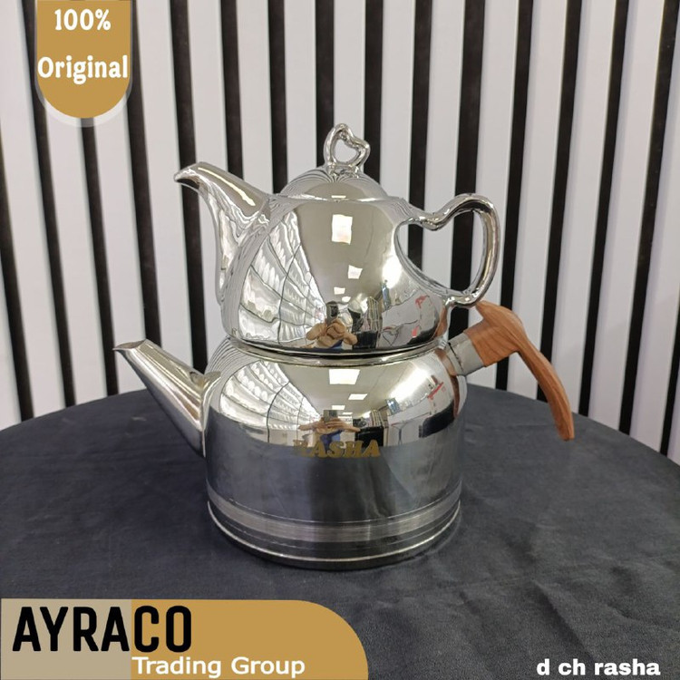 کتری و قوری استیل راشا کف چدن طرح دسته چوب