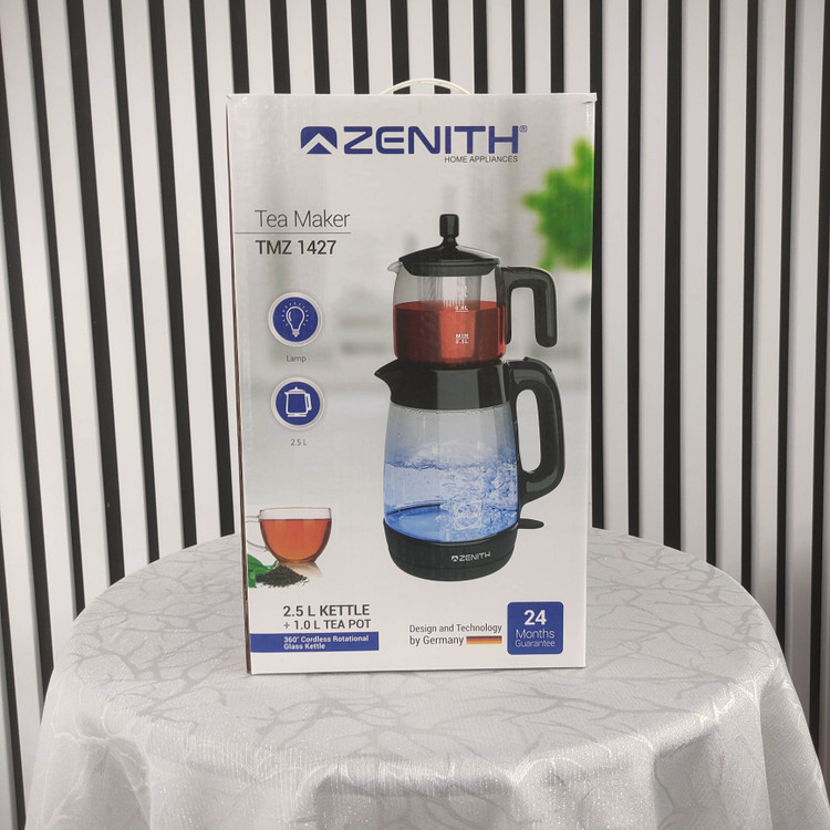چایساز زنیت مدل TMZ-1427 ترکیبی از طراحی مدرن، کیفیت ساخت بالا و عملکردی دقیق است. این دستگاه با قدرت 1800 وات واقعی، سیستم گرمایش دوقلو و کتری شیشهای مقاوم در برابر حرارت، برای مصرف روزانه خانوادهها و محیطهای کاری طراحی شده است.