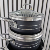 سرویس ۱۴ پارچه قابلمه مشکی گرانیتی اپیروس – مجموعه حرفهای قابلمه و تابه با پوشش مقاوم