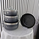 سرویس ۷ پارچه قابلمه اپیروس مشکی گرانیتی – مجموعه کاربردی و بادوام پختوپز روزانه