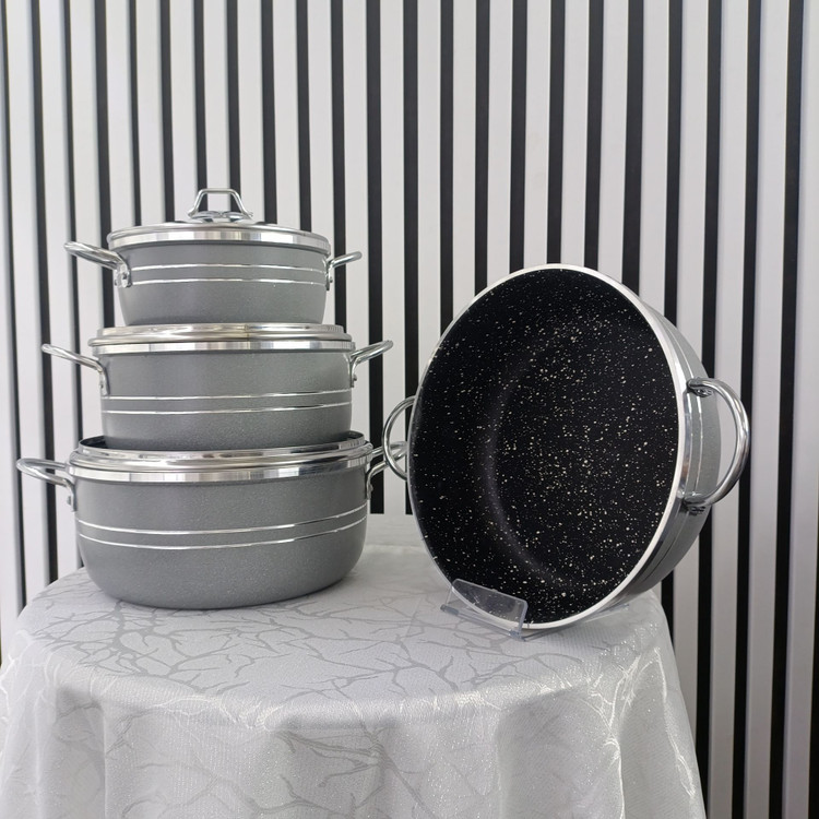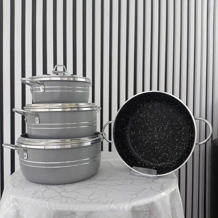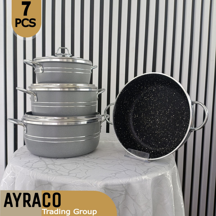 سرویس ۷ پارچه قابلمه اپیروس طوسی گرانیتی – مجموعه کاربردی و بادوام پختوپز روزانه