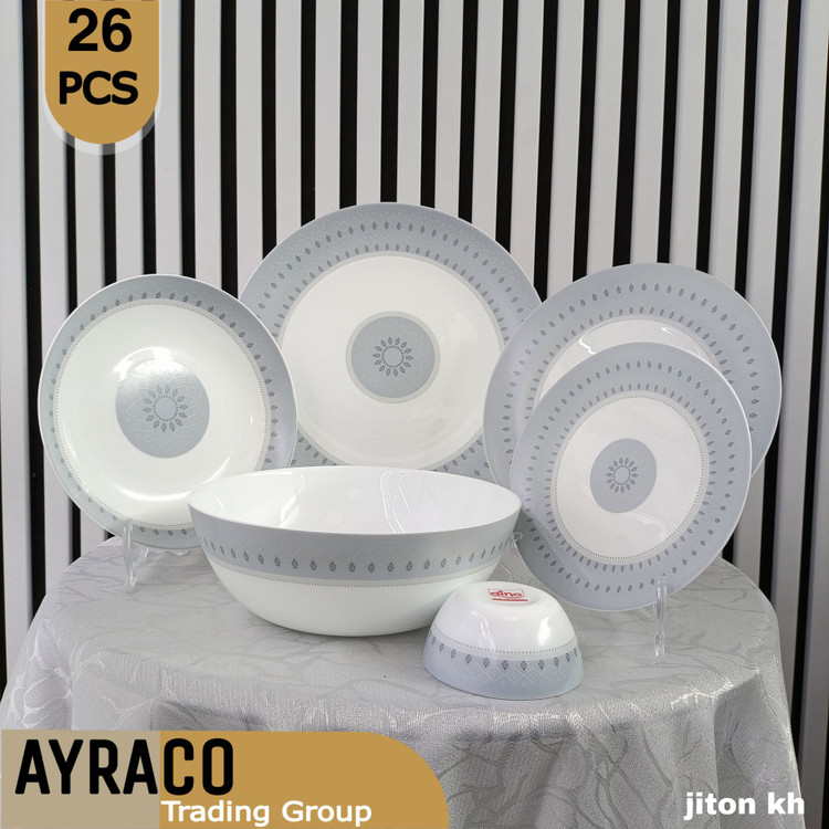 سرویس ۲۶ پارچه طرح جیتون خاکستری قالب گرد – تولید کارخانه مقصود