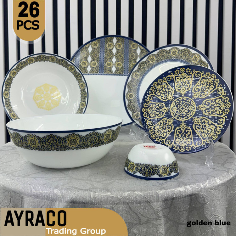 سرویس ۲۶ پارچه طرح گلدن بلو قالب گرد – تولید کارخانه مقصود