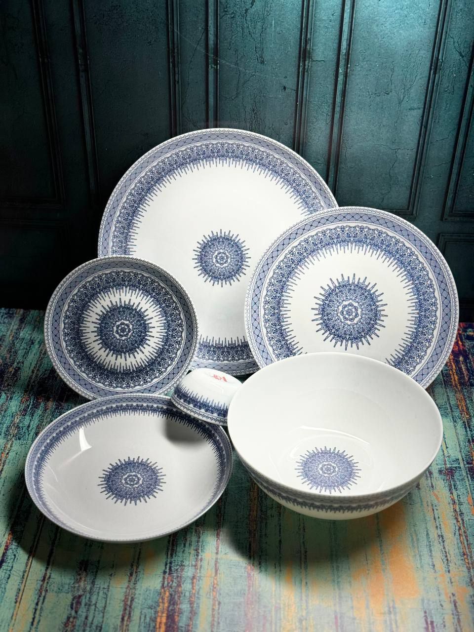 سرویس ۲۶ پارچه طرح رجینا سرمه ای قالب گرد – تولید کارخانه مقصود
