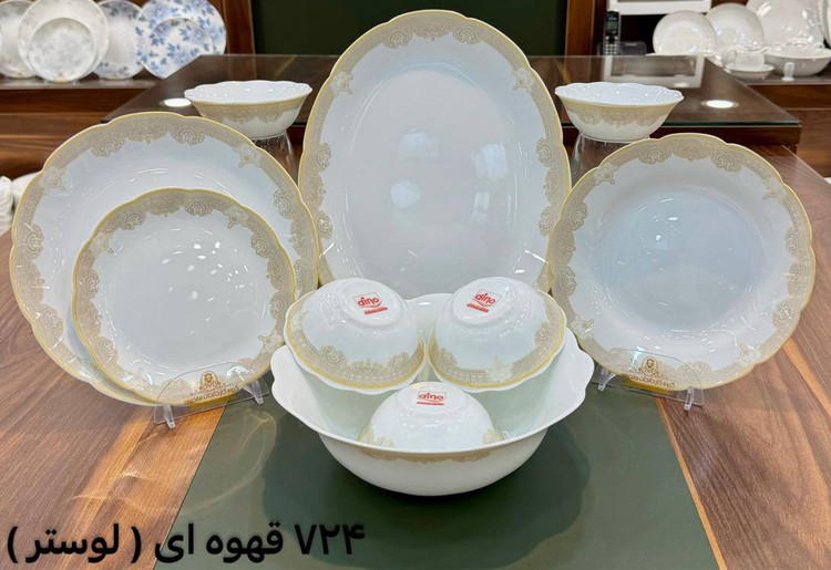 سرویس ۲۶ پارچه طرح 724 قهوه ای (لوستر) قالب گرد – تولید کارخانه مقصود