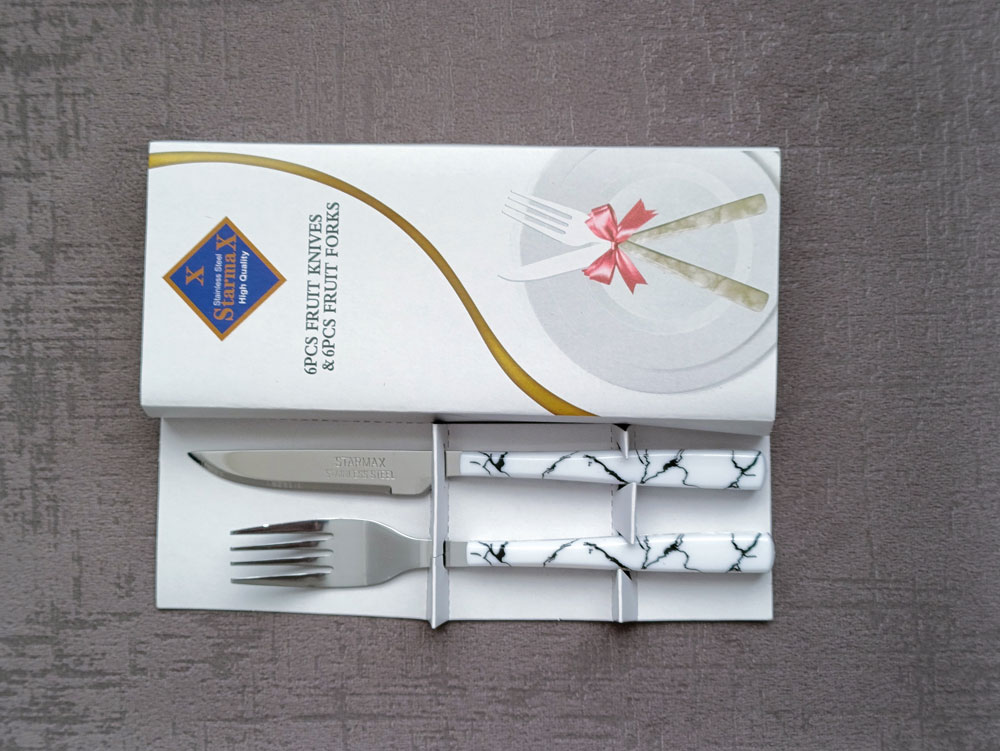 کارد و چنگال طرح ماربل کد 207 گزینه ایده آل برای خانواده های شیک و لوکس است این محصول طرح و رنگ مختلف دارد مناسب با هر سلیقه ای است جنس کارد و چنگال از استیل ضدزنگ ساخته شده است.