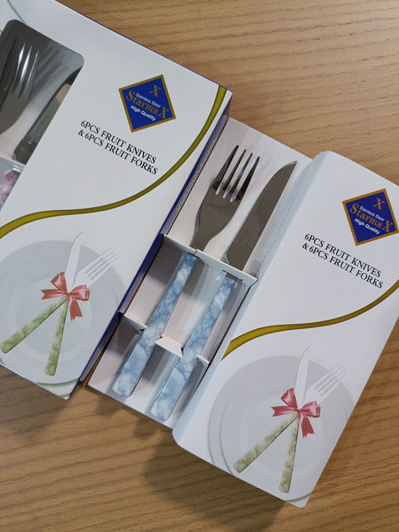 کارد و چنگال طرح ماربل کد 207 گزینه ایده آل برای خانواده های شیک و لوکس است این محصول طرح و رنگ مختلف دارد مناسب با هر سلیقه ای است جنس کارد و چنگال از استیل ضدزنگ ساخته شده است.