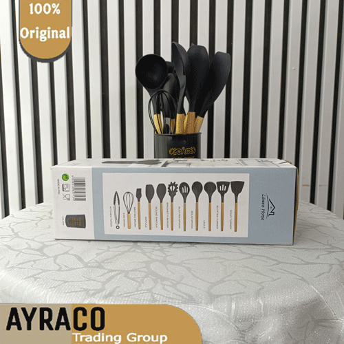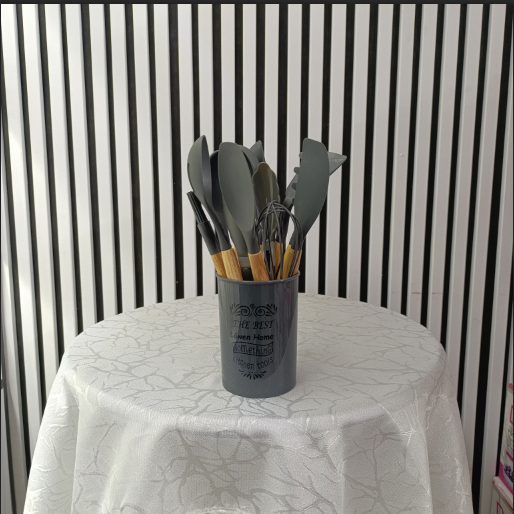 ست 12 پارچه کفگیر و ملاقه سیلیکونی طوسی | ابزار آشپزی نسوز، نچسب و بادوام