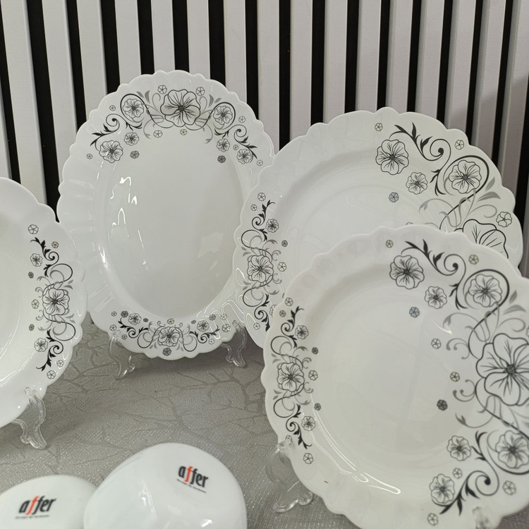 سرویس غذاخوری ۲۵ پارچه استیما مشکی برند آفر | ست بشقاب آکروپال ضدضربه و لوکس