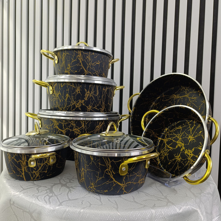 سرویس قابلمه 14 پارچه ماربل زرفام رنگ مشکی و طلایی