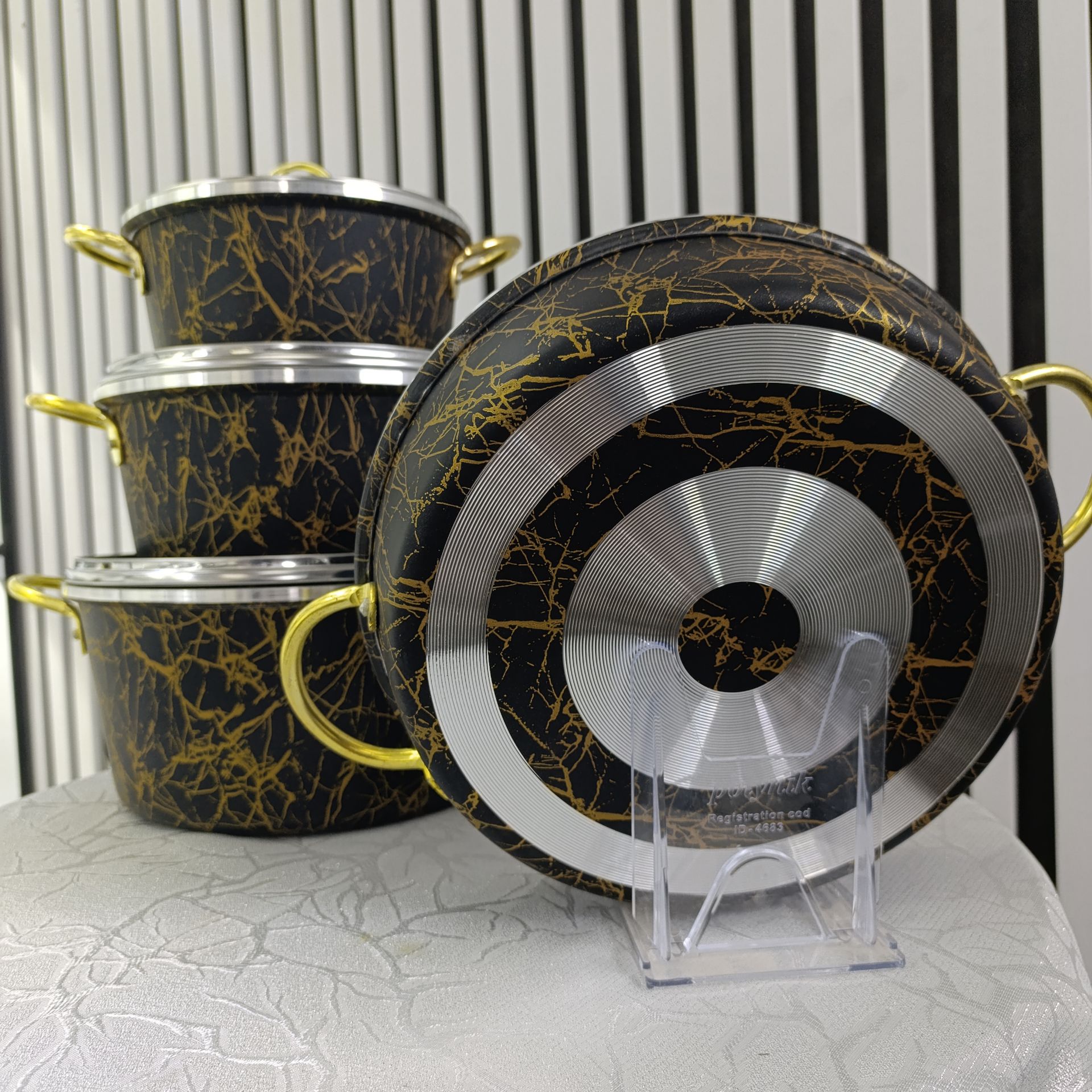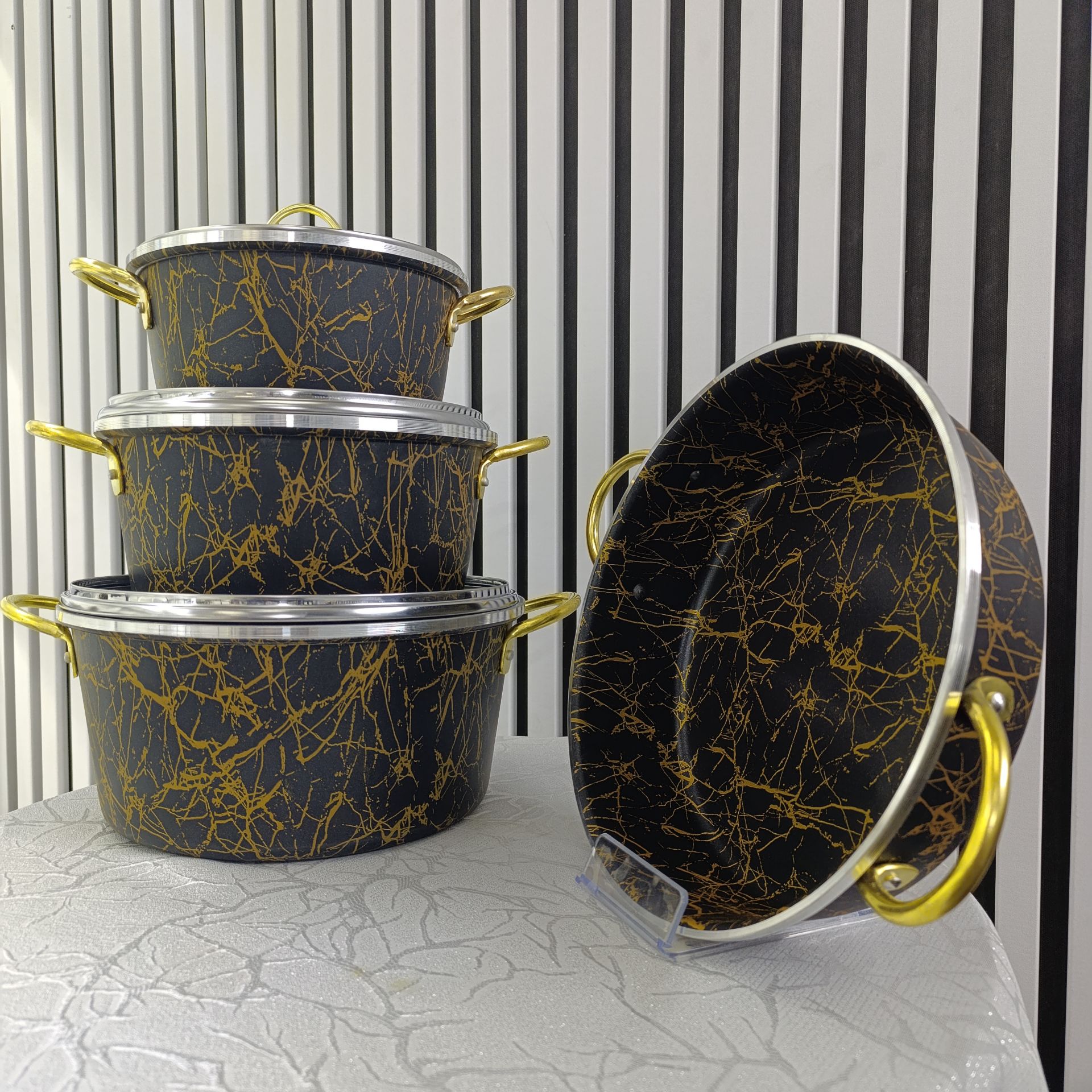 سرویس قابلمه 14 پارچه ماربل زرفام رنگ مشکی و طلایی