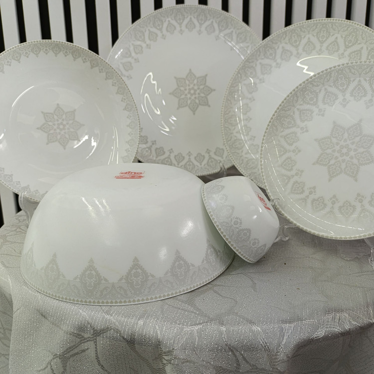 سرویس غذاخوری 26 پارچه آریان خاکستری دینو | خرید ست بشقاب ضد شکستگی