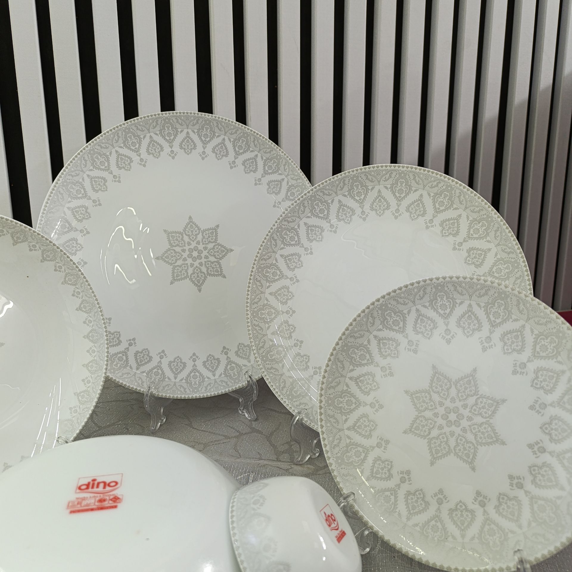 سرویس غذاخوری 26 پارچه آریان خاکستری دینو | خرید ست بشقاب ضد شکستگی