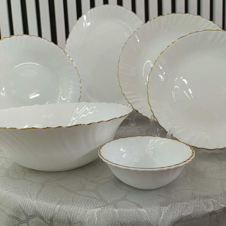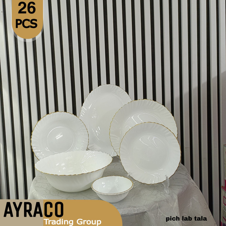 سرویس غذاخوری 26 پارچه پیچ لب طلا برند دینو | خرید ست بشقاب ضد شکستگی