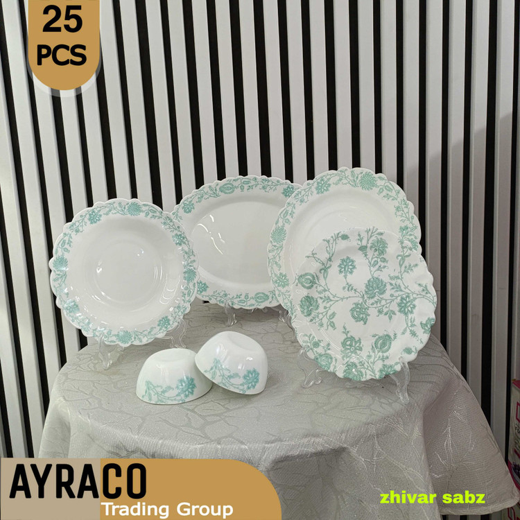 سرویس غذاخوری ۲۵ پارچه ژیوار سبز برند لئون | ست بشقاب آرکوپال لوکس و مقاوم