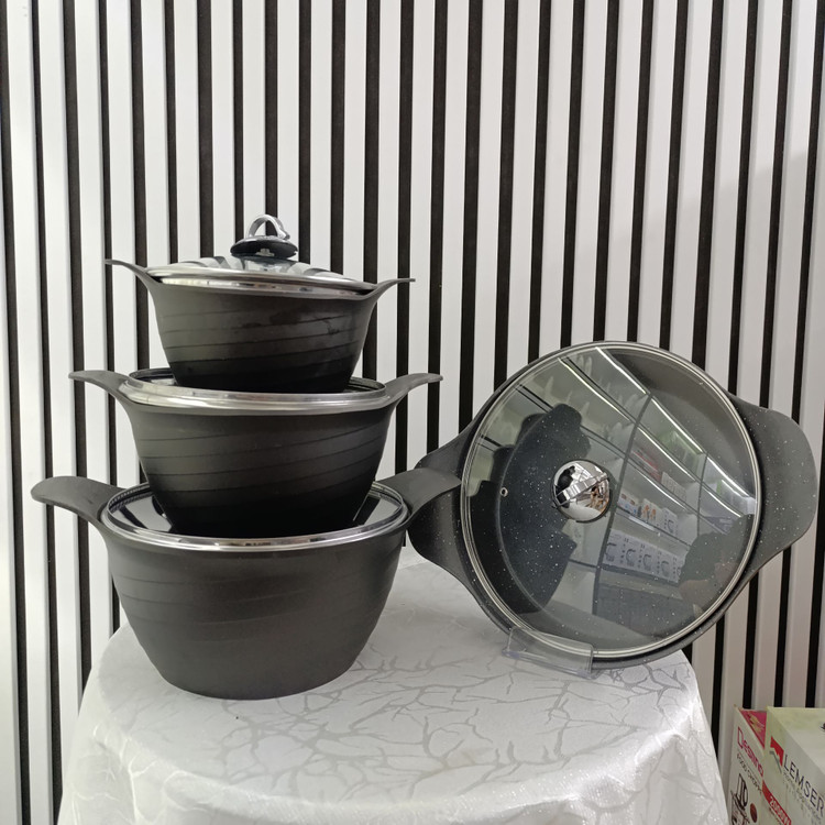 سرویس قابلمه 8 پارچه چدنی هدیه (مشکی) - 3 قابلمه + 1 تابه