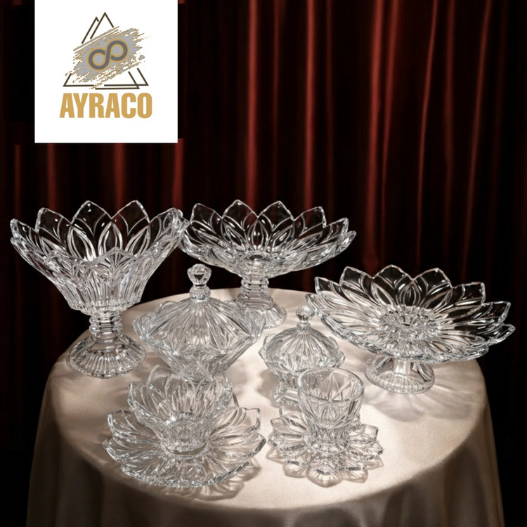 کیفیت شفاف، درخشش آینهای و ضخامت مناسب ظروف باعث شده این مجموعه علاوه بر زیبایی، دوام بسیار بالایی هم داشته باشد. از آجیلخوری و شیرینیخوری تا فنجان و کاسهها—all in one—هر چیز لازم برای یک پذیرایی کامل و آبرومند را یکجا در اختیار شما قرار میدهد.